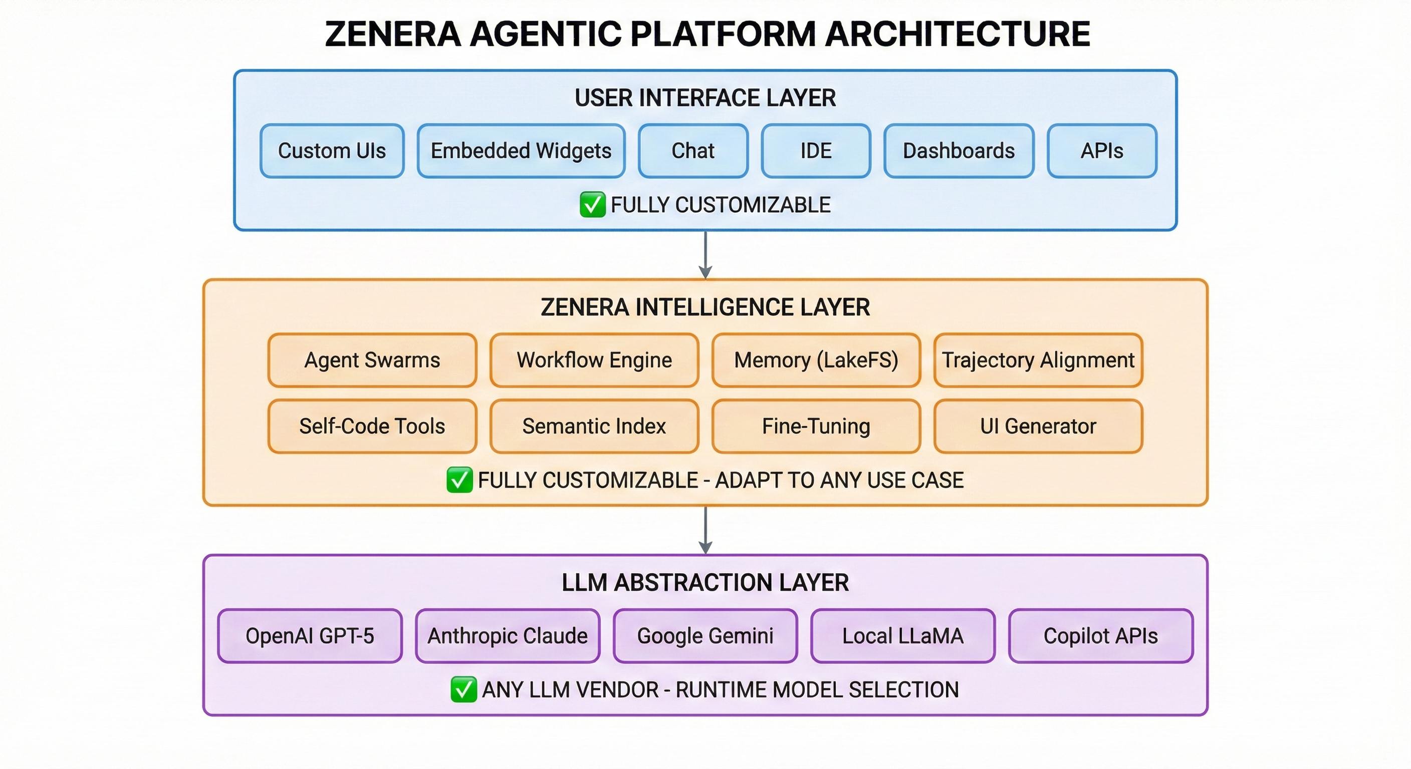Zenera is infrastructure for enterprises that treat AI agents as production systems, not experiments. Every capability -- from transactional storage to automatic fine-tuning -- is engineered for the operational realities of heterogeneous enterprise environments.